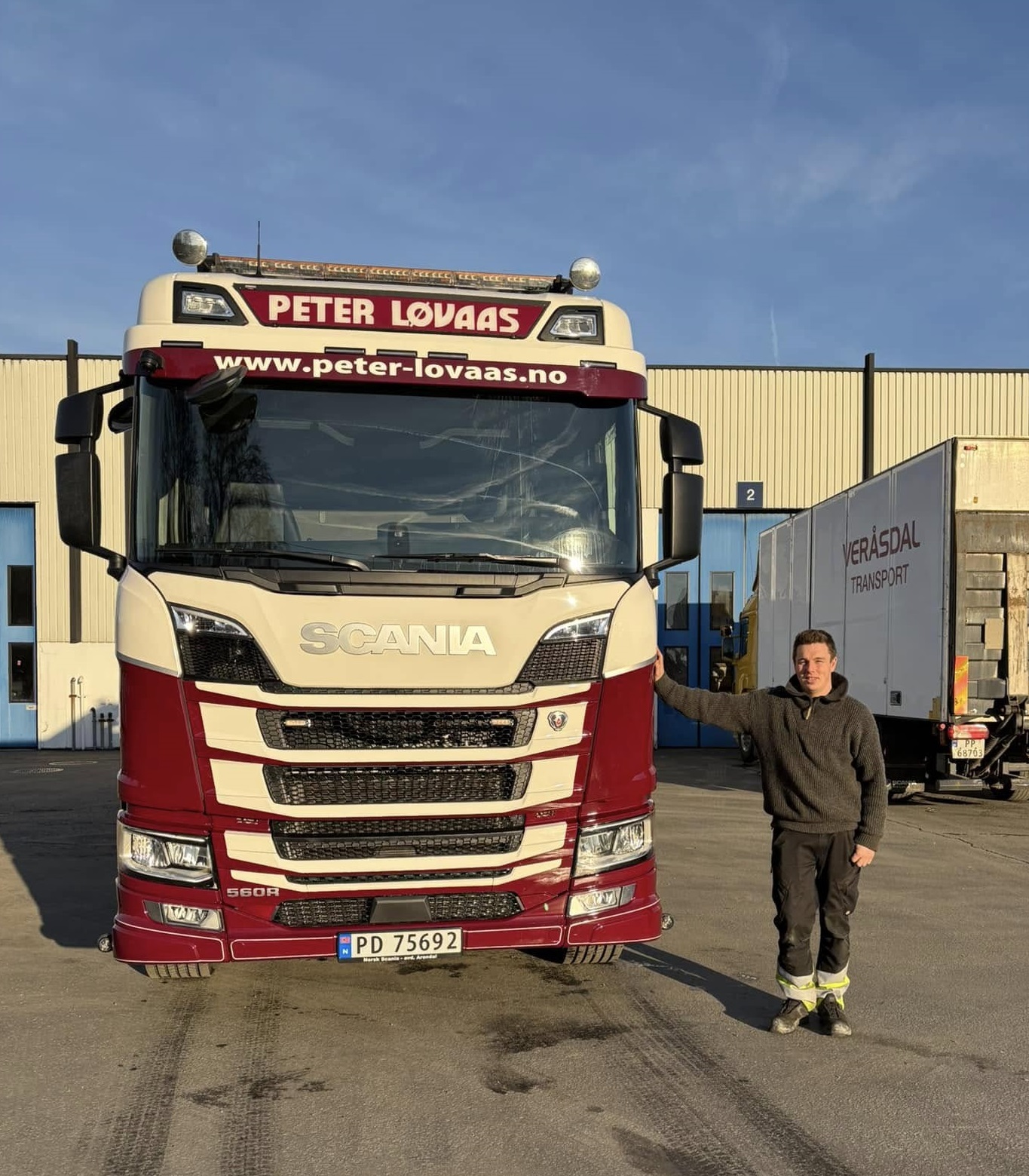 Vi fikk levert en ny, flott kranbil av Scania denne uken. Ikke rart Thom Andrè smiler fra øre til øre!