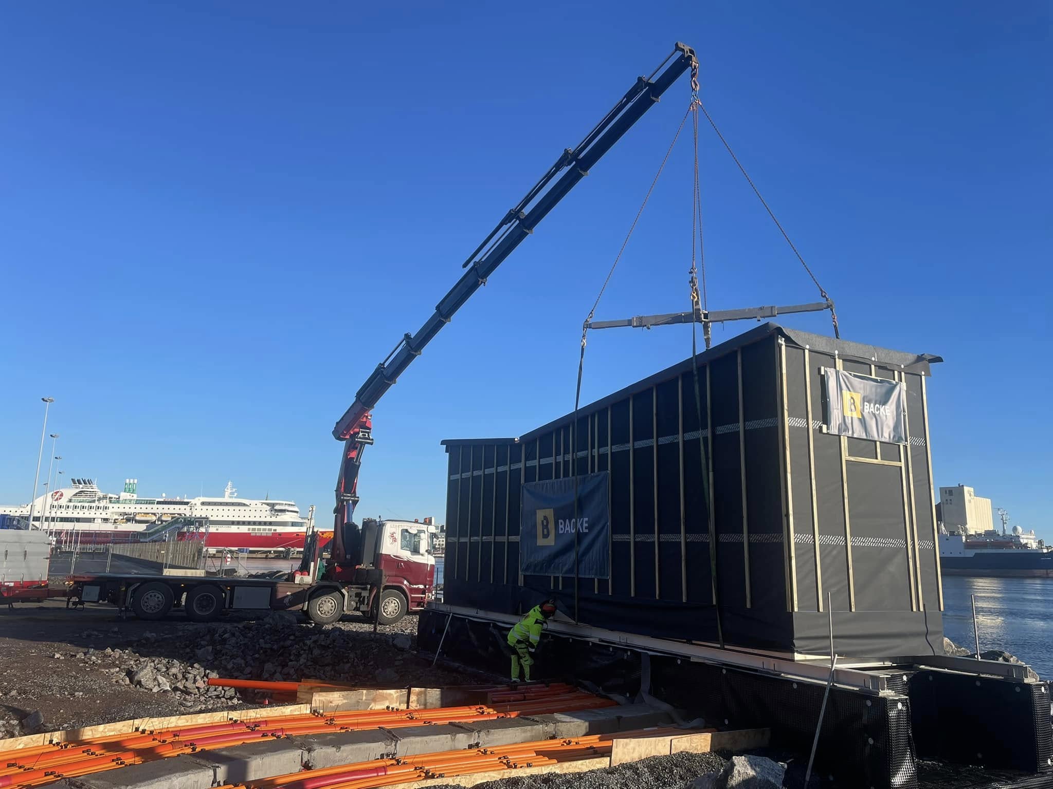 Vi setter pris på å få utfordringen med frakt av nye billettluker og ny tollkontroll fra industriområdet på Lund ned til havna. Med en totalhøyde på 518 cm krevde det nøye planlegging for å unngå hindre som trær og lydtopper langs veien. Vi mener at våre ansatte løste dette på en ypperlig måte. Vi takker for oppraget!